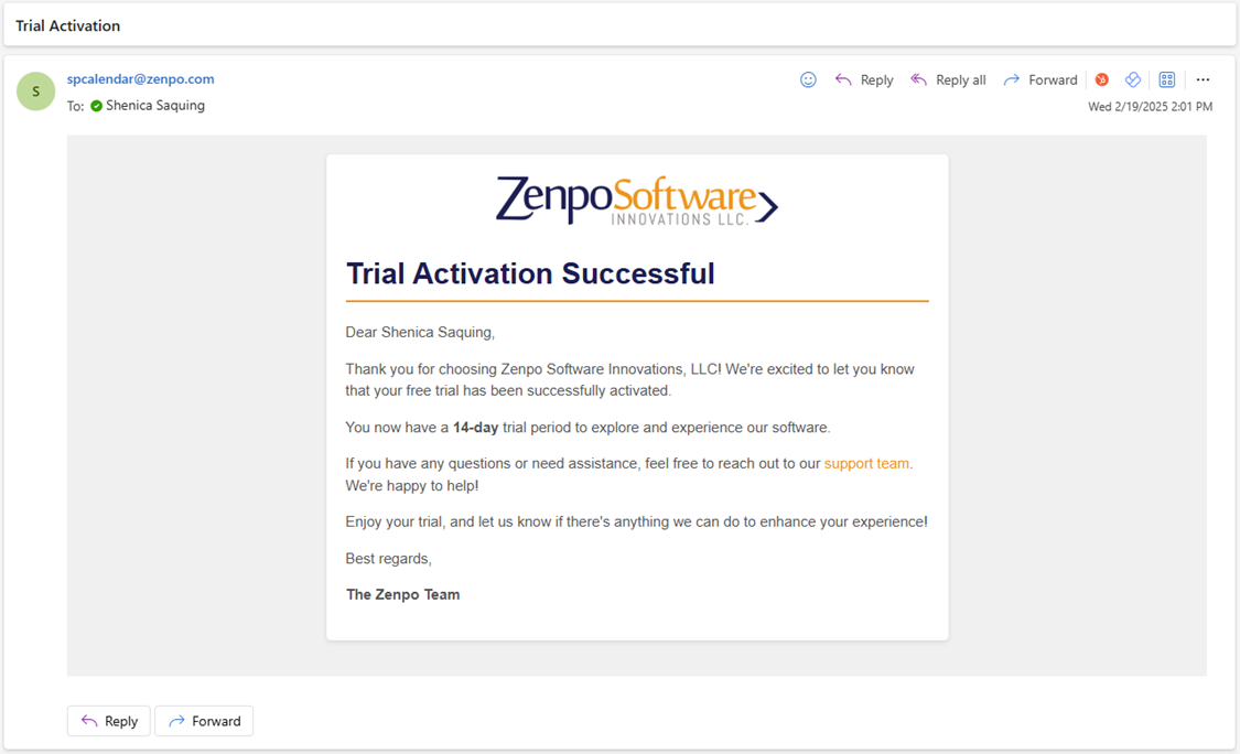 Click the "Activate Trial" button. You will receive a confirmation email that your trial has started.