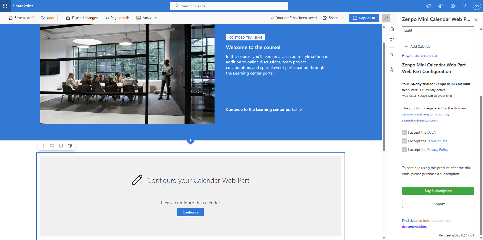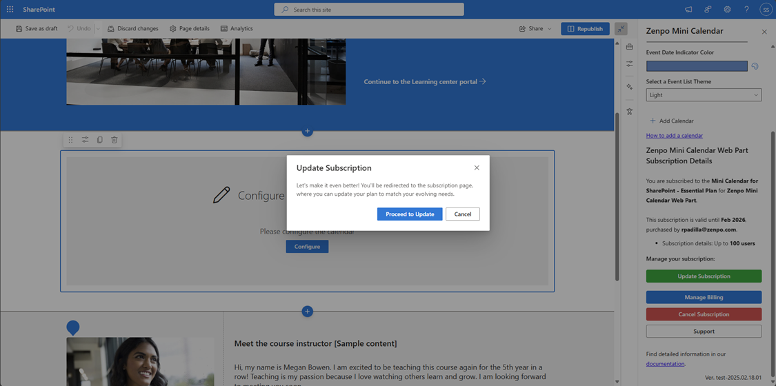 his guide will help you understand how to activate your free trial, manage your subscription, and navigate the Mini Calendar Web Part's subscription.