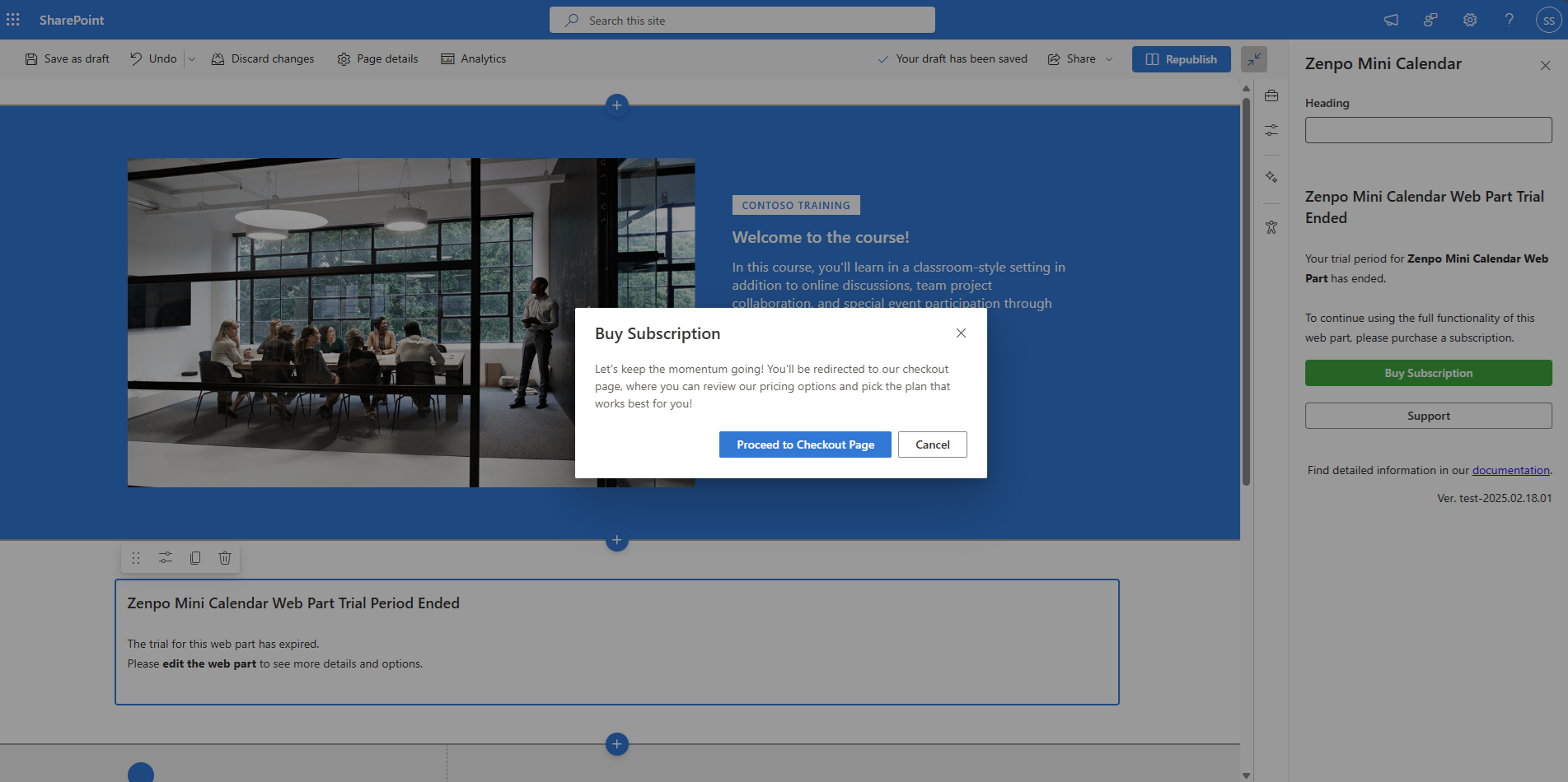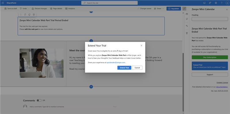 Click the option to extend the trial. You’ll get additional time to try the web part. Once the extension ends, a subscription is required.