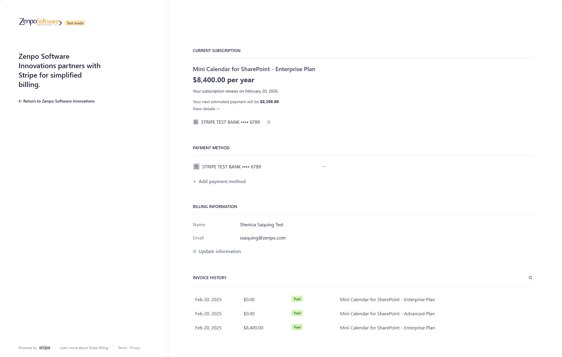 - Enter Stripe to confirm changes